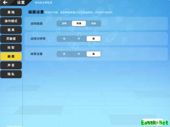 6.画面 战场画面和分辨率:视自身设备性能不卡顿情况下尽可能的高,视觉效果存在明显差异,不会影响游戏操作。 帧数:这项一定要设置到高,帧数过低会有一定程度游戏操作影响。