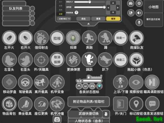 绿色区域触控移动角色,黄色区域触控移动视角进行瞄准。 *自定义操作面板