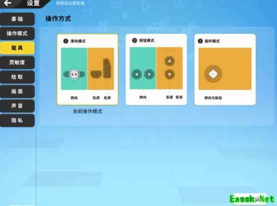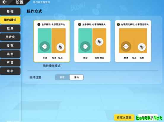 各面板/按钮功能 改键:一共可设置三种自定义操作界面方案。 *此项设置可保存云端,更换设备后设置数据可从云端同步到新设备。 *右开火键在按住时可移动视野瞄准跟随目标,左开火键无法拖动。 3.载具 载具的三种操作模式