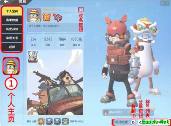 一、个人信息主页面板有五个大项[个人空间/赛季数据/历史战绩/亲密关系/成就]1.个人空间