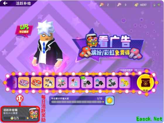 赛季主题内容,可以免费获得部分物品,如果想获得全部道具,需要购买季票,且在赛季结束前达到季票100级,可通过季票任务快速升级,也可以通过糖果购买等级。 右上角按钮可查看本赛季主题漫画/动画/季票内容图鉴和季票特权功能。 十五、每日活跃奖励