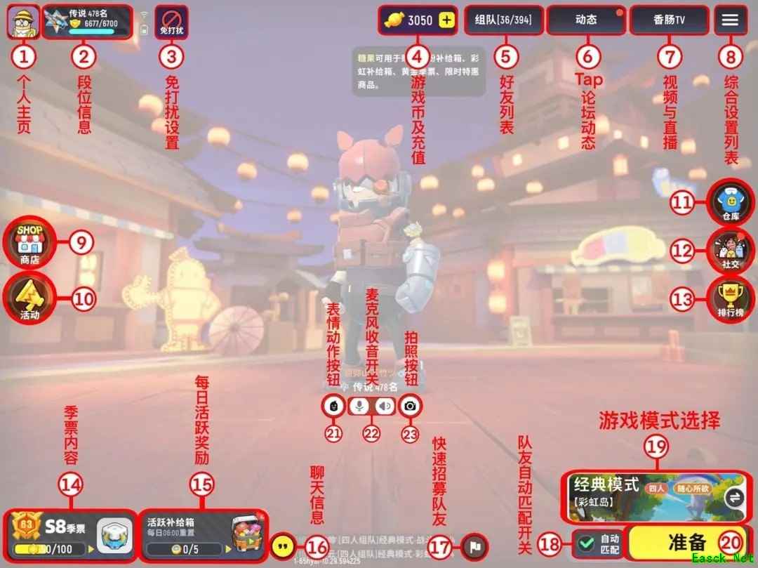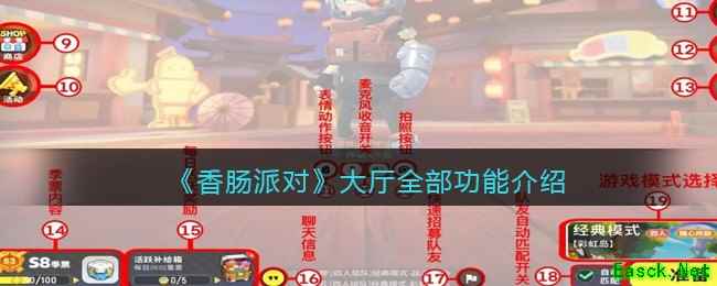 《香肠派对》大厅全部功能介绍如图是各个分区名字: