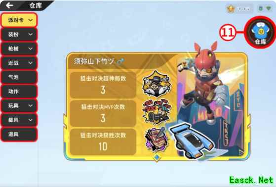 仓库内是我们解锁的各种道具物品,可以在物品详情界面进行穿戴。 穿戴后会在派对卡上或游戏内体现。 十二、社交