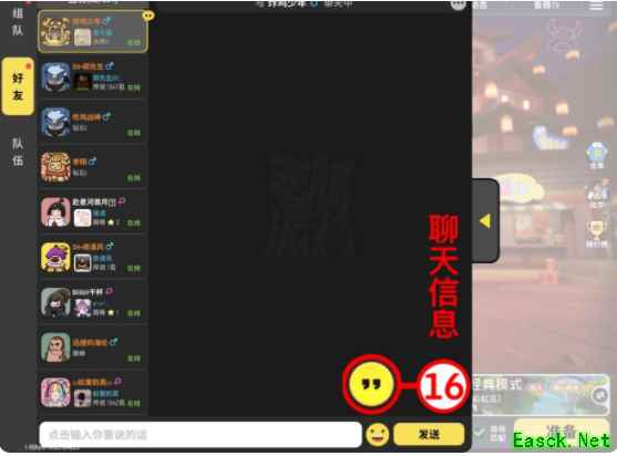 聊天界面可查看/发布:世界组队邀请/好友私信/队伍信息。 十七、快速招募按钮