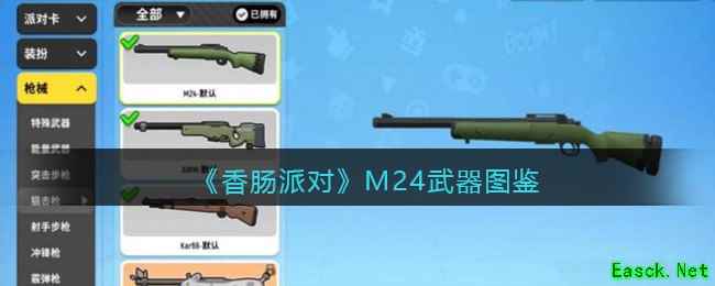 香肠派对M24在狙击枪中各项数值仅次于AWM,但是和Kar98的击倒率是一样的,不击中头部都无法直接击倒,击中头部也只能使二级头倒地;在狙击枪中伤害不如AWM,但是又不像AWM那样依赖特殊的马格南子弹,极易获得的7.62mm子弹就可以使用。接下来小编就给大家带来了《香肠派对》M24武器图鉴,想要了解武器详情的朋友速来!