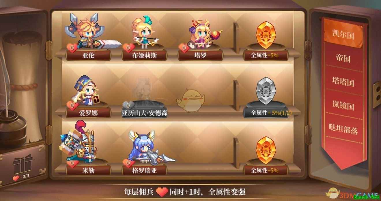 《异次元大作战》羁绊效果攻略通过时之回廊模式得到的礼物可以提升英雄的亲密度,当一排英雄的亲密度同时升级时,全属性也会对应有所加成。亲密度升一级,全属性+1%。同时完成亲密度的升级也会有相应的钻石小奖励哦。 兰特大陆目前一共有五个国家,分别是:凯尔国、帝国、塔塔国、兰镜国、哒坦部落。 这五个国家都形成于空岛时代之后,国与国之间有相互的依靠与敌对、和平与战争。