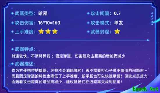以上就是小编整理带来的《香肠派对》暗器牙签性能介绍攻略,更多相关游戏攻略,请关注手游网! 本文内容来源于互联网,如有侵权请联系删除。 |