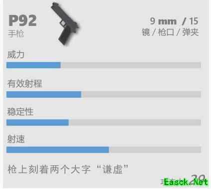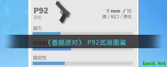《香肠派对》中P92使用子弹9mm,基础容弹15发,可以使用红点,基础伤害30点,只有单发模式。P92和P1911一样并没有独自作战的能力,主要作用是在贴脸情况下主武器子弹打完后,使用手枪弥补伤害。接下来小编就给大家带来了《香肠派对》 P92武器图鉴,想要了解武器详情的朋友速来!