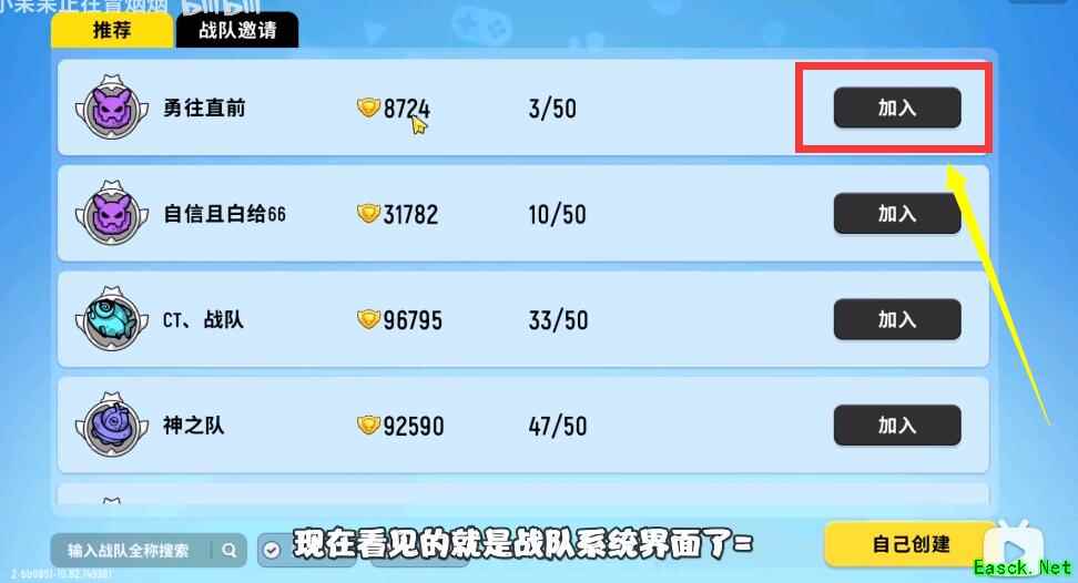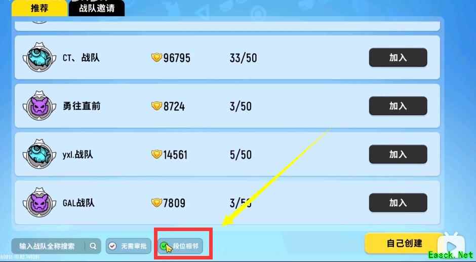 2、然后系统会向你推荐可以加入的战队,你也可以自己在下方搜索想要加的战队;