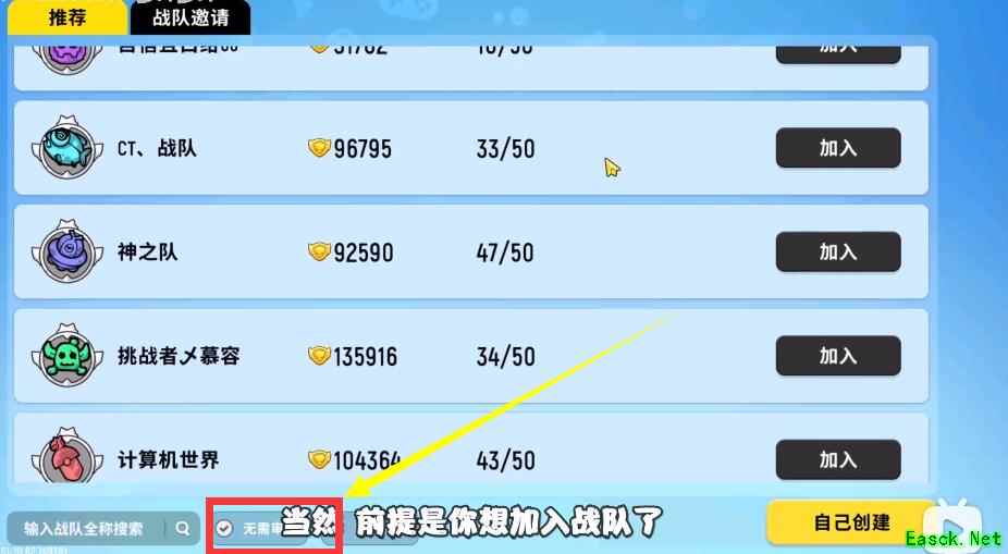 3、而且可以勾选无需审核的,这样更容易进入战队;