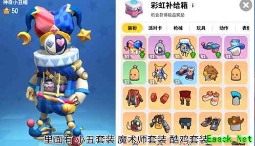 S1赛季的绝版皮肤: 通过开启彩虹补给箱,获得小丑套装、魔术师套装、酷鸡套装