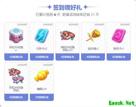 香肠派对ss18赛季福利签到活动怎么玩一、活动介绍 1、通过活动入口进入签到活动页,查看活动信息与活动日期。 2、点击屏幕下方找到【立即签到】按钮,点击按钮即可完成今日签到。 3、点击签到后得到1张卡片,同时可以领取对应天数礼包,点击【领取】,前往【我的礼包】即可查看礼包。 4、领取到礼包码后,点击【前往兑换】前往礼包码兑换页面,兑换奖励。 5、通过每日签到收集齐卡牌后,就可以兑换对应额外奖励。 二、活动奖励 签到领奖励 1、累计签到1天: 彩虹补给箱×1 2、累计签到2天:任务卡×3 3、累计签到3天:缤纷补给箱钥匙×30 4、累计签到4天:金玫瑰×2 5、累计签到5天:房间卡×1 6、累计签到6天:彩虹补给箱钥匙×30+缤纷补给箱钥匙×30 7、累计签到7天:糖果×30