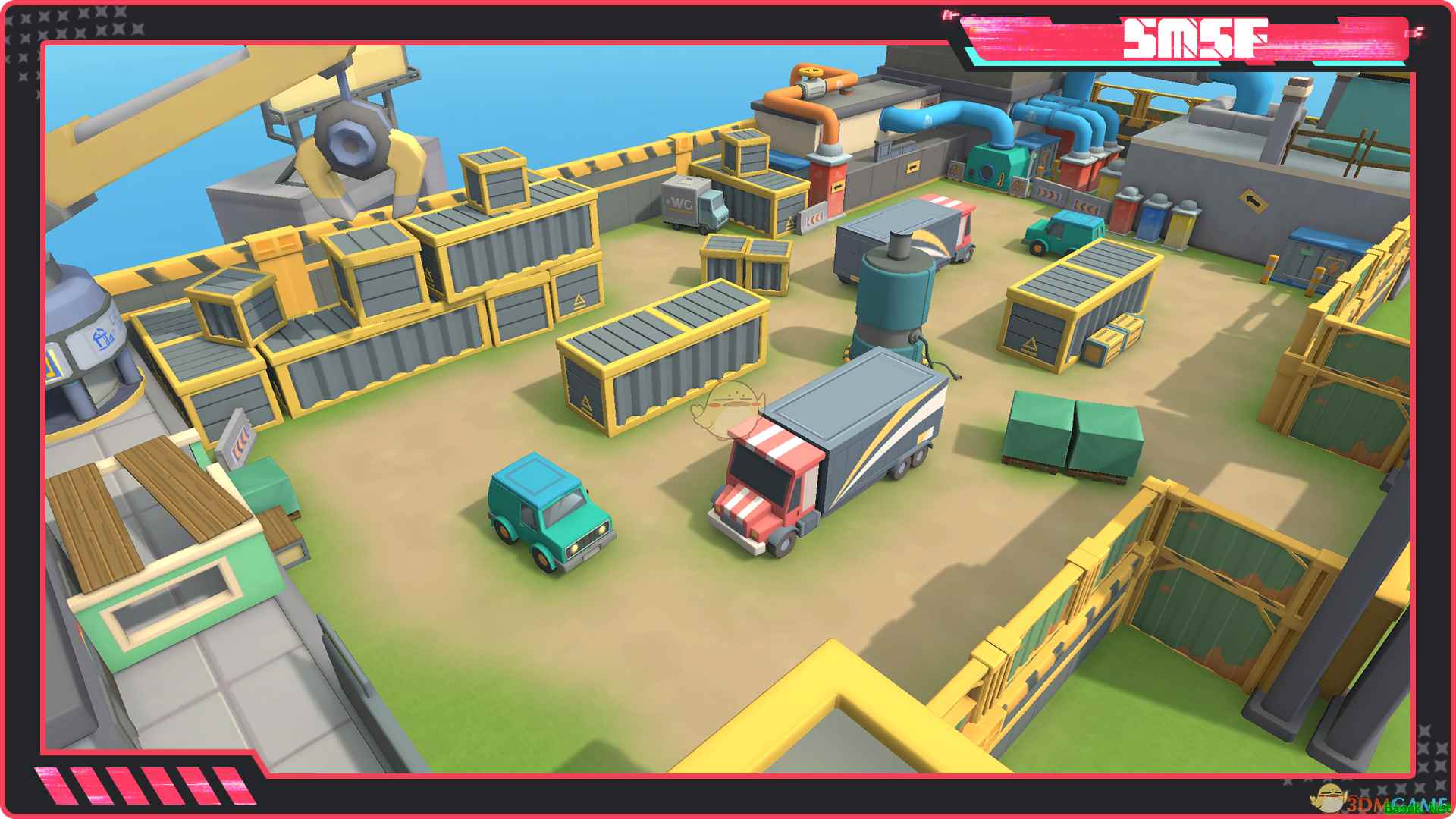 5、地图-卸货区 在运输货物的过程中,也可能会出现敌人突袭的情况,围绕着集装箱的战斗一触即发!卸货区场地中的集装箱和车辆等都可以为我们的战斗提供躲避之处,肠肠还可以登上较高处发起进攻!