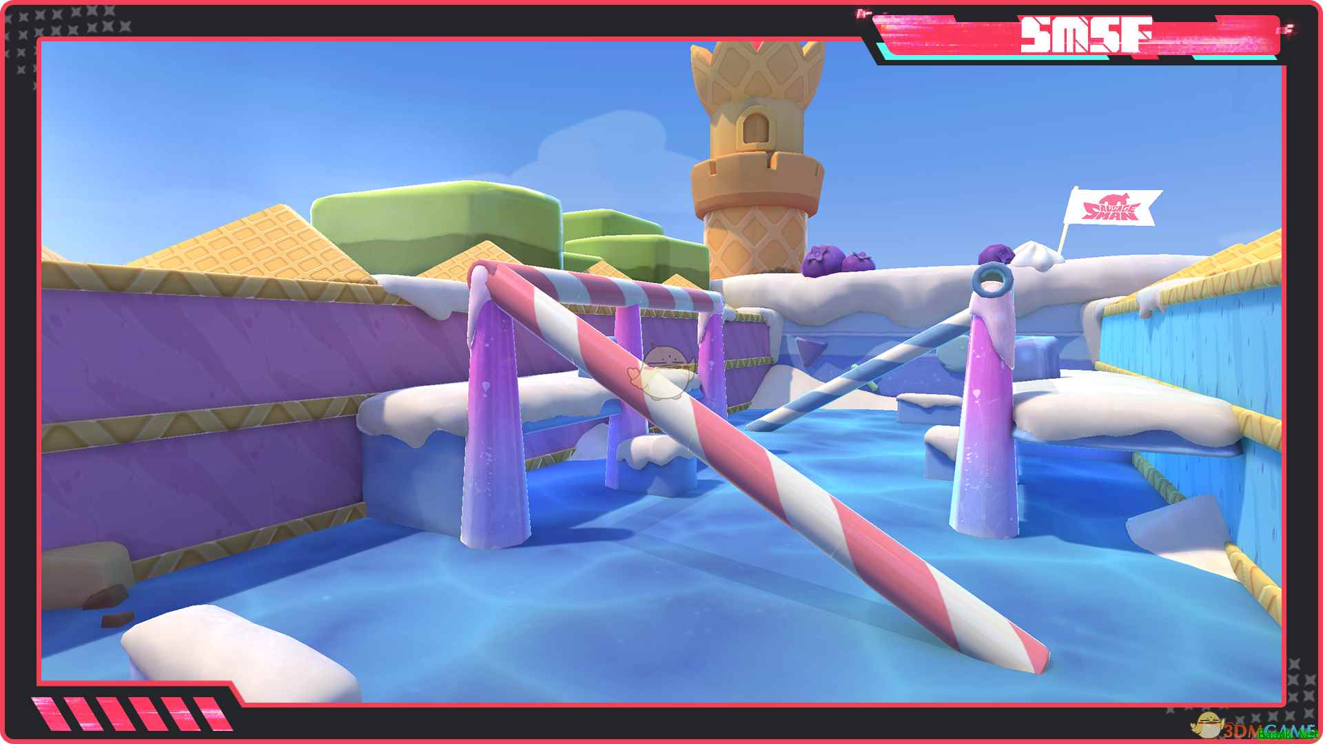 4、地图-冰场 在冰天雪地中,来冰场游玩成为了肠肠们的新选择,部分场地被皑皑白雪覆盖,让我们在冰面上感受冬天的乐趣吧。
