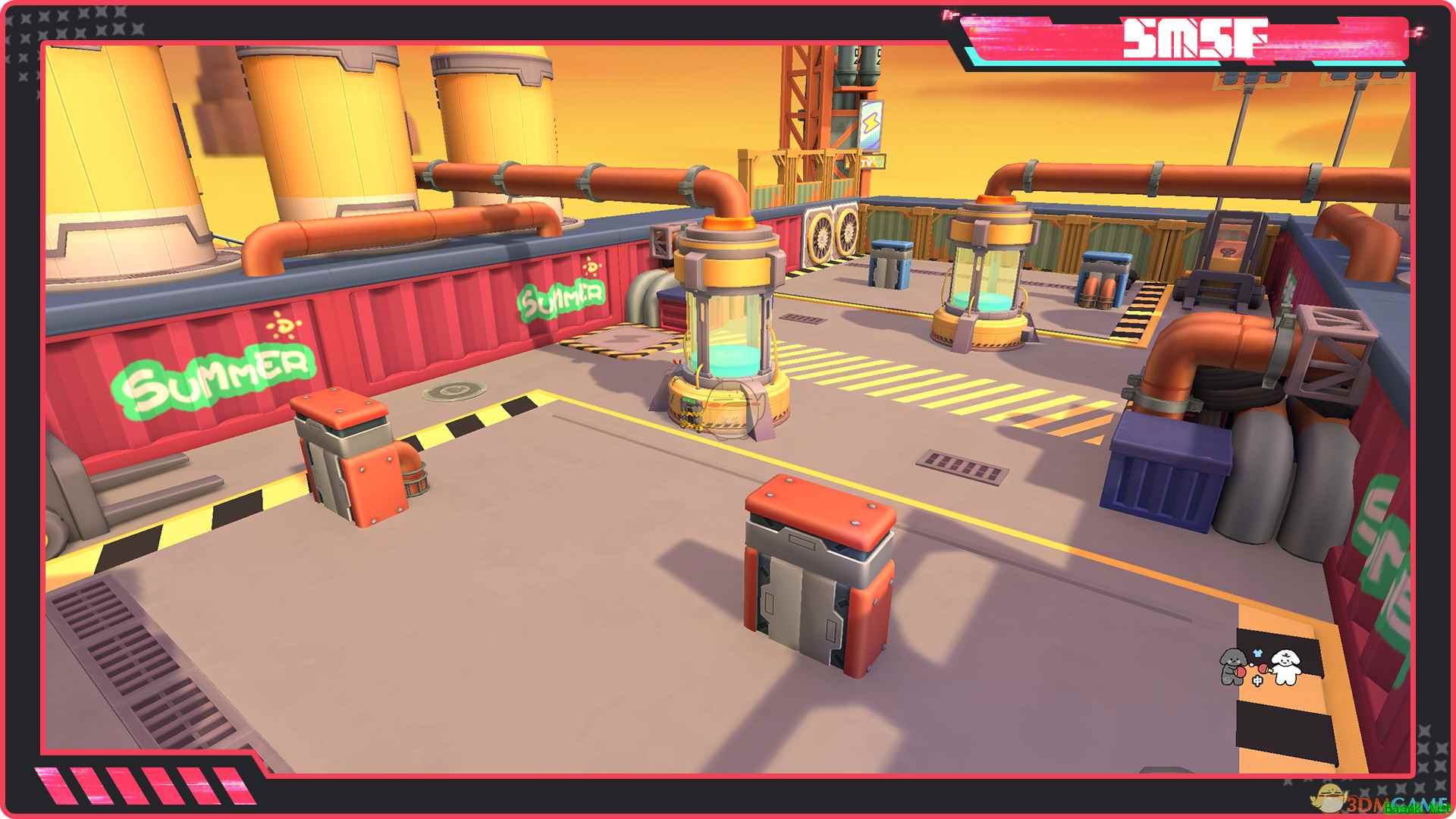 2、地图-工厂 第二张地图是工厂,别具工业气息的运输管道横亘在路中央,这里障碍物相对较少,一场场激烈的对决将在这里展开。