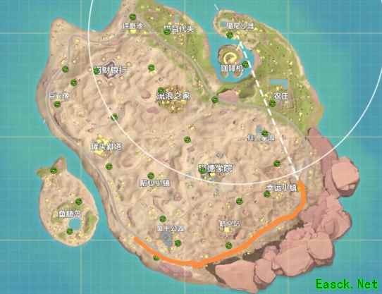 香肠派对喵沙岛苟分点在哪一、圈边缘 1、喵沙岛属于游戏中的沙漠地图,玩家只需可以前往下图标记的位置即可。 2、这条线橙色线上的的房子非常多,探索后就能获得大量的装备和医疗物品。 3、然后找到一个房子趴地上苟着,缩圈后在前往圈边的房子就能苟到前几。