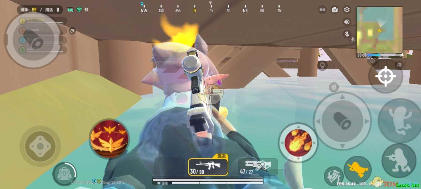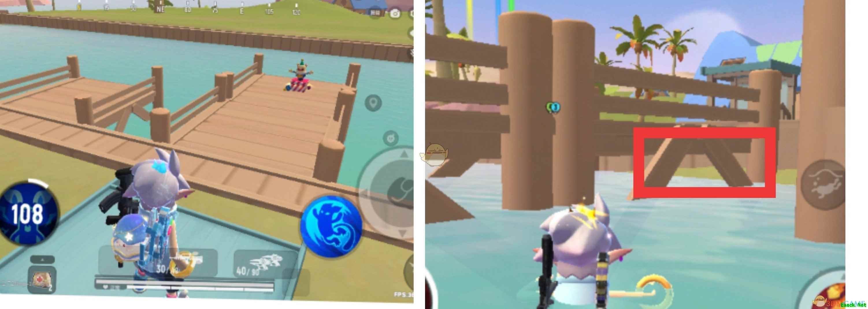 五、推荐苟分点位置 位置在②号区域水池的木桥底下,可以游到里面,趴着苟分。一般人发现不了