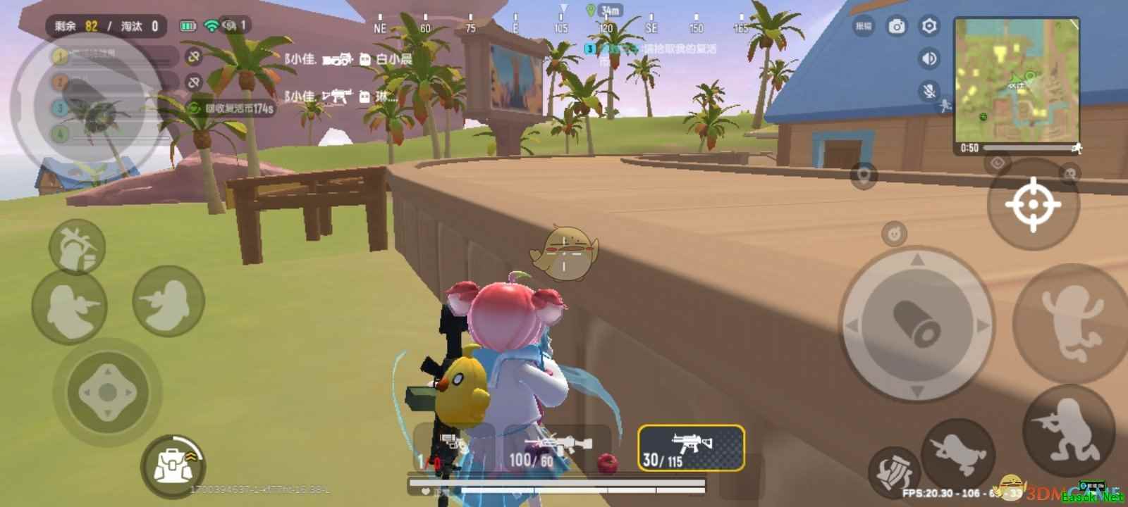 4、再拉近点转移时除了利用植被、石头等掩体外,我们还可以利用农庄地形优势-反斜坡天然掩体。蹲下利用第三视角观察敌人动向,趁敌人不注意发起袭击。