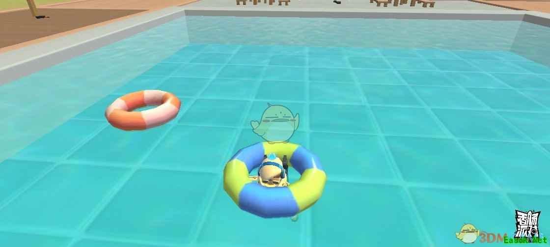 4、温馨提示:千万不要落水,尤其是别跳泳池上方的两个游泳圈里面。跳进去就出不来了,直接被牢牢锁住。也不能持枪,只能等着挨打或毒死。
