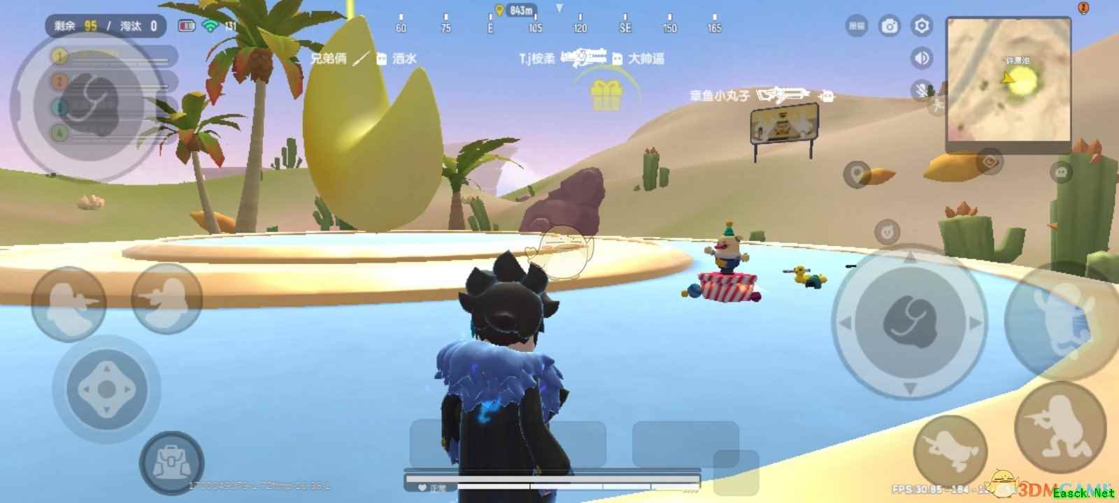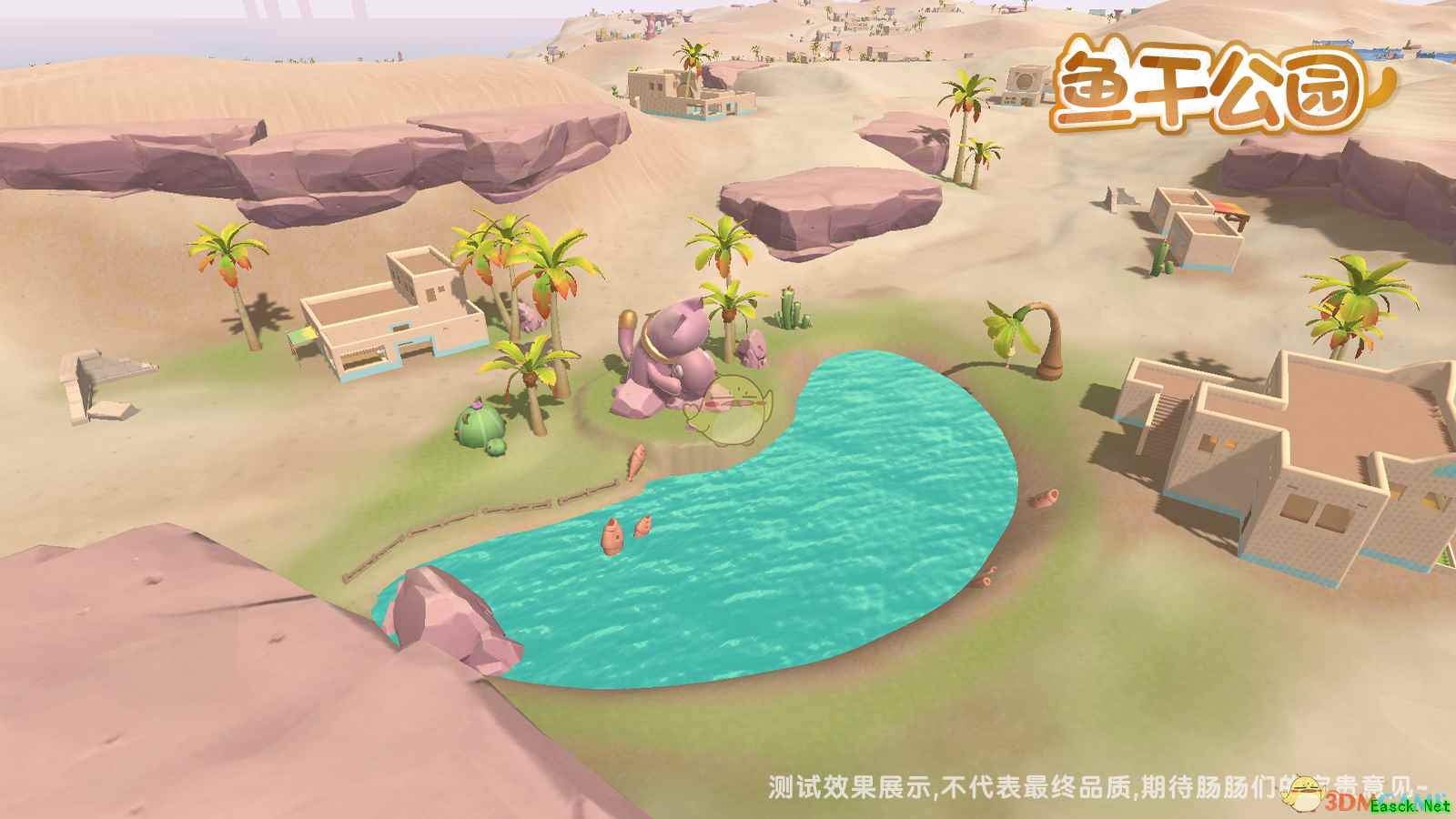 四、鱼干公园(物资程度★★) 跟仙人掌园一样,物资较少,房屋四周都有岩石包围。中央有条月亮形的水池,水池旁边矗立着雕像。雕像底部是会随机刷新宝箱。