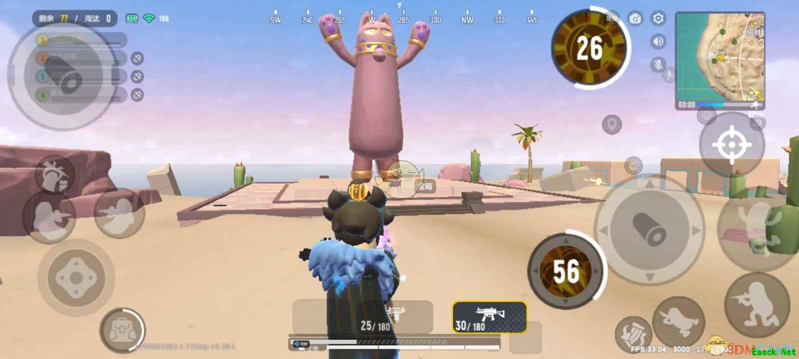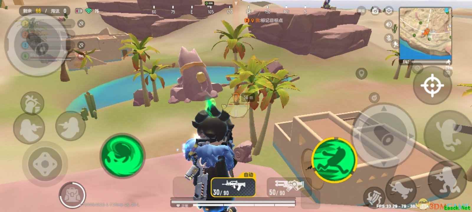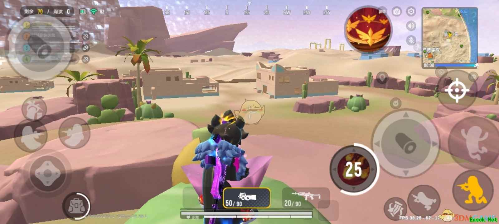 2、仙人掌园实战打法 搜完装备直接占领这块岩石区,寻找合适的仙人掌充当掩体。对周边房屋的敌人进行高打低,架住敌人。