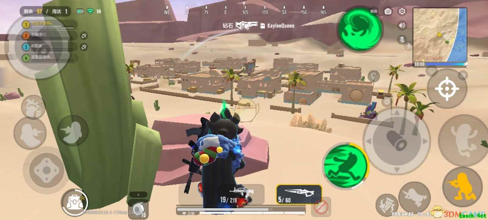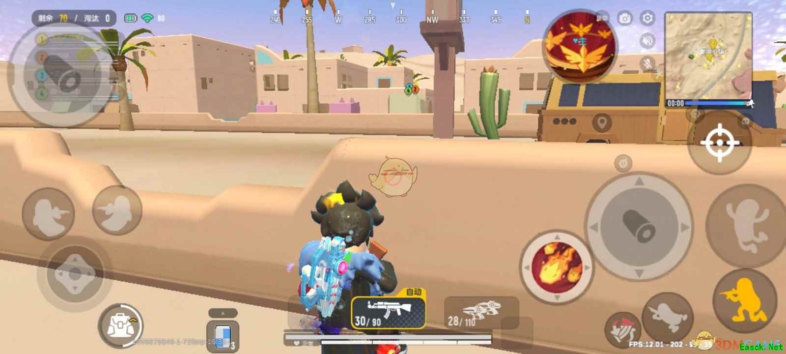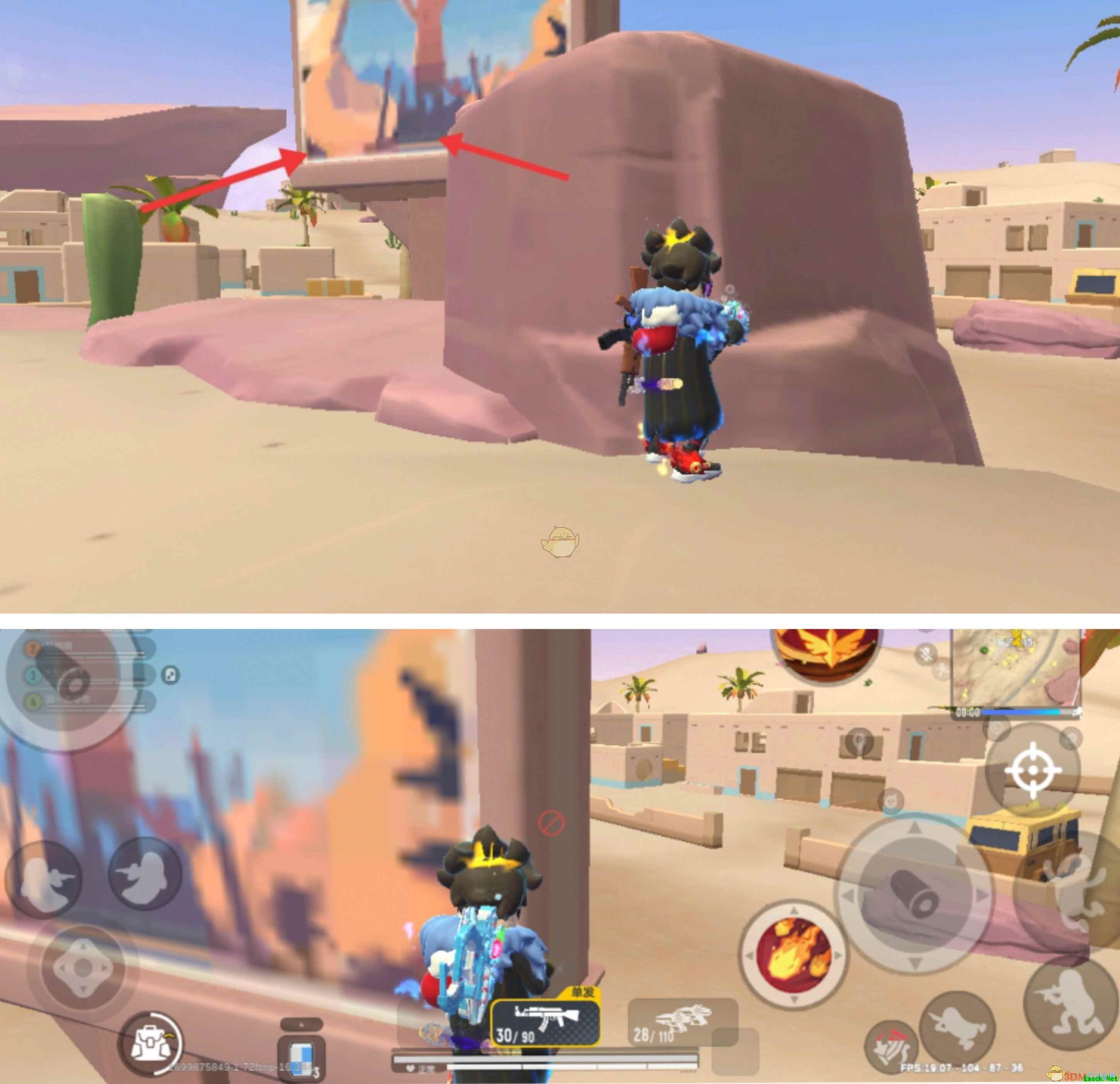 三、实战打法:分情况 1、街道上/对面有敌人 幸运小镇里有很多密集的建筑,周围都有矮小的围墙断断续续的将这些建筑包围着的。我们可以利用围墙边缘当掩体,蹲着围墙后通过第三视角观察局势,等敌人出现在视野范围起身射击。