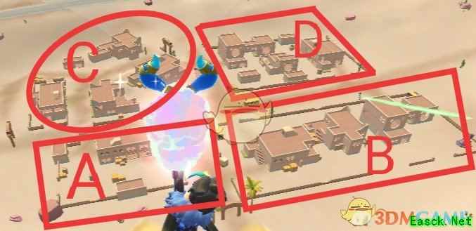 二、推荐落伞点:分为四大区 我们可以把幸运小镇大至分为四个区,用A、B、C、D划分。