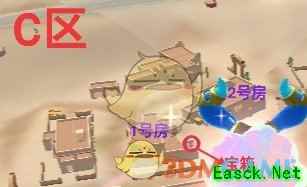 1、推荐优先跳C区 ①、C区的落点房屋最好选择靠近里面的1号房或2号房(如下图)首先C区房屋比其它地势要高些,而且1号房屋阳台会刷新宝箱,跳下去即可捡个三级护甲,提升战斗优势。