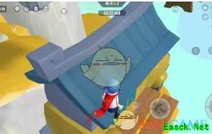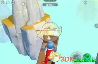 7、宝箱七:利用技能一路前进,然后在站在冲力区域飞上天,控制方向落在木板上即可领取。