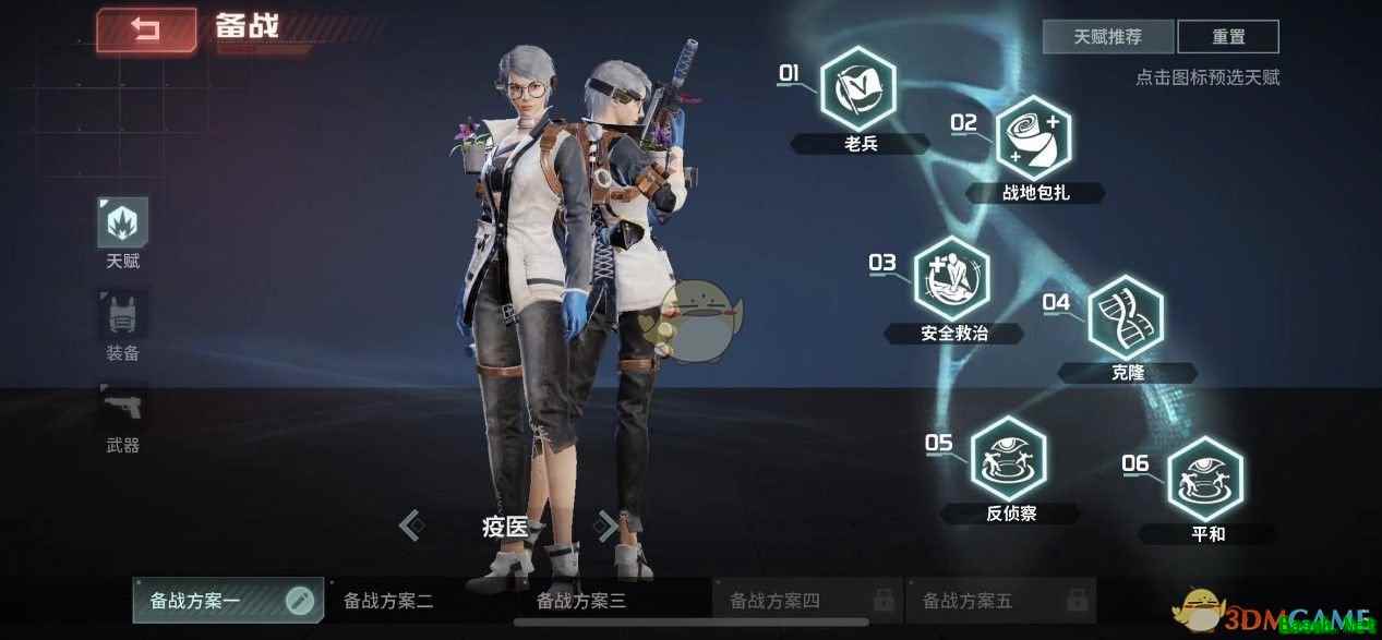 疫医天赋加点攻略疫医的技能就是在“ 续 命”那么天赋加点也要根据她的生存能力去加点: 一级老兵,提升前期的打钱能力;二级店战地包扎,三级点安全救治,四级点克隆,都是为了提升疫医的生存能力;五级点反侦察,加强地方信息获取能力;六级点平和,加快技能冷却时间,提升疫医的灵活性。