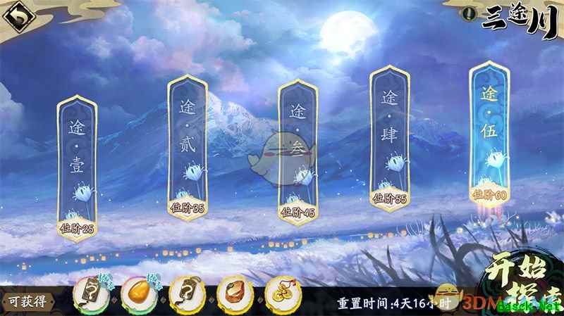 【玩法规则】 1、每周只能选择一个难度进行探索,选择后,不可再进入其他难度。 2、三途川会在周一的05:00进行重置,重置后,之前获得的宝物将会消失。 3、少侠队伍达到对应位阶,解锁对应难度。 4、每次战斗阵亡的英灵在三途川之后的战斗内不可再次上阵。