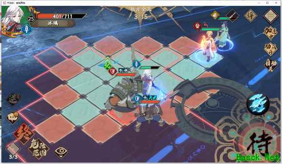 11、如上图,封铃笙贴脸弄死手持钢板的雷属性小怪,反正封铃笙接下来不会受伤,掉不掉血无所谓,这么做是为了留右下的位置给冰璃。