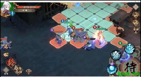 4、第二回合冰璃秒火属性小怪,然后砍一刀弓箭手,夏侯仪往上走,用AOE砸死弓箭手。 5、这么做的意图是下一回合,夏侯仪救出古伦德,冰璃正好可以触发机关,节约时间。