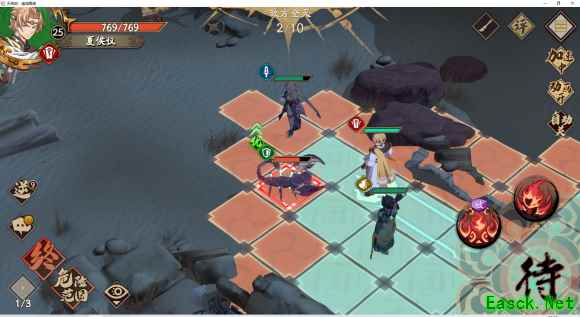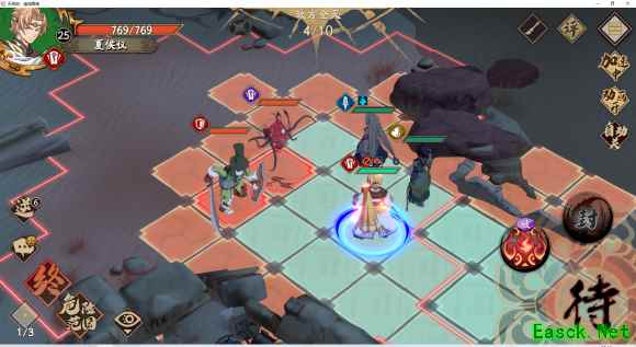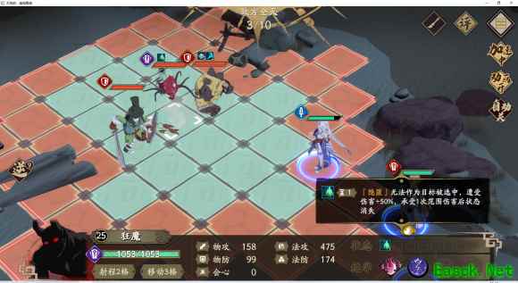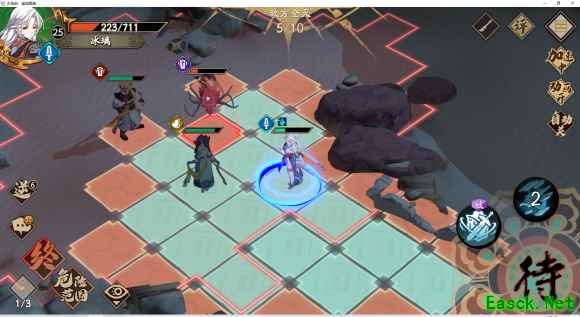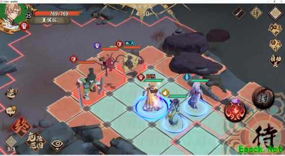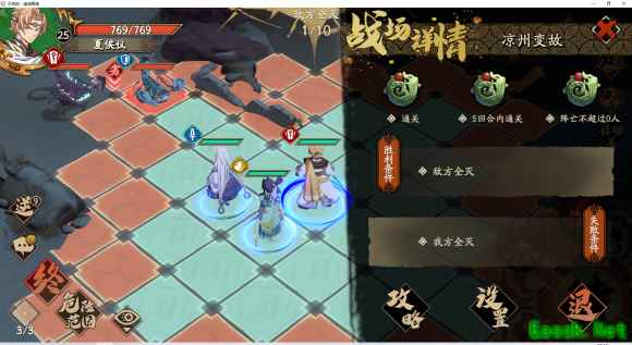 其他人站到攻击范围之外。 7、这回合需要注意一下。 8、两只小怪分别需要两次攻击才能打死,BOSS需要三次攻击才能打死,一共七次,而我们两回合只能攻击六次,所以需要反击才能完美结束战斗。 9、BOSS是远程,只会攻击唯一的近战冰璃,所以需要冰璃反击两个近战小怪,但冰璃扛不住三只怪的同时攻击,我们就必须消灭其中一只。 10、近战小怪会打封铃笙,封铃笙的攻击力不足以反击死小怪,所以我们要调整站位,让冰璃的站位能护卫到封铃笙和夏侯仪。