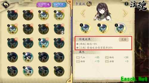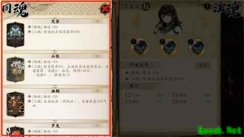 【同魂魂石】 1、在注魂界面左上点击「选择同魂」可以筛选对应类型的全部【魂石】。 2、同魂效果可在「注魂」页面魂石的详细信息面板查看。