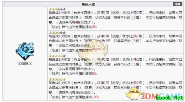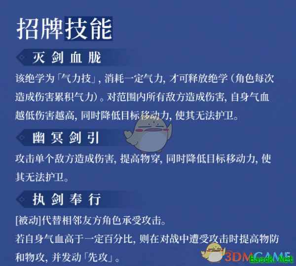 技能: 绝学 攻击单个敌人,造成1.4倍伤害,物穿提高10%,「对战前」驱散2个【有益状态】,施加「迟缓」状态,持续1回合。「迟缓」:移动力降低1,无法护卫