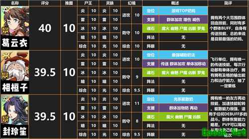 《天地劫幽城再临》SSR排行一览T0:葛云衣(最强奶妈),相桓子(最强奶辅),封铃笙(驱散奶)