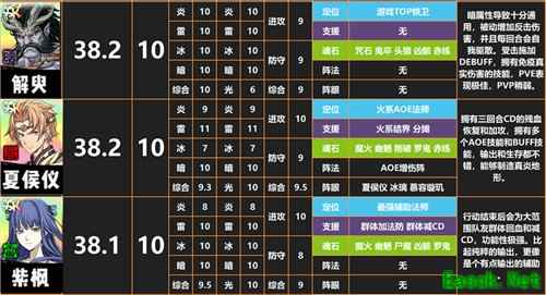 T1:郸阴(最强单卡),慕容璇玑(雷系远距离法师),封寒月(最强冰法),解臾(最强铁卫),夏侯仪(最强火法),紫枫(最强辅法)