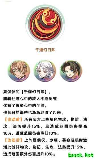 夏侯仪阵法,阵法加成高,特效几乎无用,但因为其阵法成员,冰璃、夏侯仪、慕容璇玑三人属性不同,角色质量极高,都算是各系中的天花板,可以应对绝大多数情况。唯一缺点就是太贵。