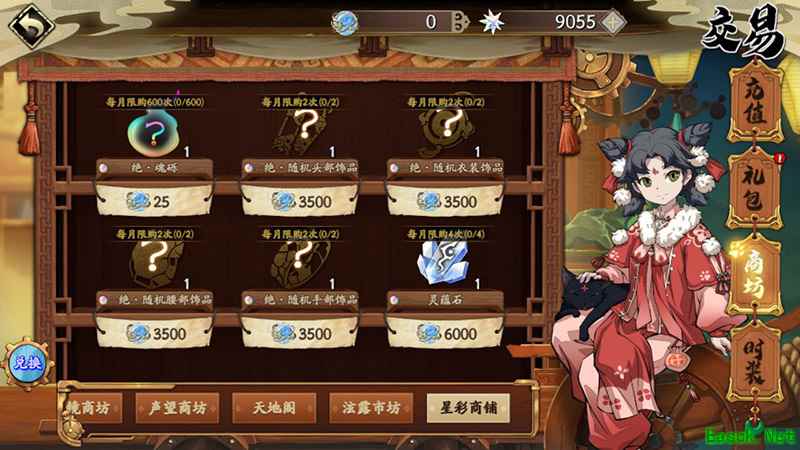 七、星彩商铺 可以通过左下角的兑换功能分解多余的形外三魂(英灵碎片)来获得星之彩。在星彩商铺内可以通过消耗星之彩来购买各种绝品随机饰品。星之彩商坊内的商品均有一定的周期购买限制。