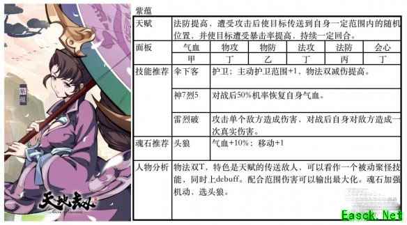 既然是夏侯混雷队,那么抛开固定三人,加入的两个雷角色即可。由于固定三人1侠士2法师都是输出,剩下的无非是T,奶。因此个人推荐阵容为:夏侯仪,冰璃,慕容璇玑,葛云衣,紫蕴。其中,紫蕴强度有待测试,唯一亮点就是天赋的变相聚怪能力,公测后出其他绝品强力T的话可以酌情替换,目前是最好的选择了。开夏侯阵时,利用紫蕴聚怪,然后范围伤害减灭是个好主意。葛云衣的传送弥补了队伍整体机动力差的缺点,关卡拿宝箱等有用。以下是具体角色介绍。