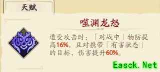 [镇定]在连续遭受多名敌人围攻时作用突出,因为一直处于挨打中血量百分比会比敌人低,所以镇定的+12%攻防可以一直稳定触发,[暗之力]配合韩无砂这种稳定制造负面状态的队友可以对携带2个有害状态的敌人伤害额外提高20%,算上天赋的60%额外伤害提高,加上[镇定]的反击中+12%攻击若能触发的话,别看解臾只是一个纯挨打的铁卫,反击伤害发挥到极致不比一些英灵主动输出低呢。 PVP中推荐带[龙绝捍卫]+[破阵威压]+[龙焰化鳞]