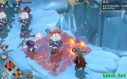 三、真炎地形 炎属性地形,在真炎内的敌方角色,行动结束时,会损失24%气血。