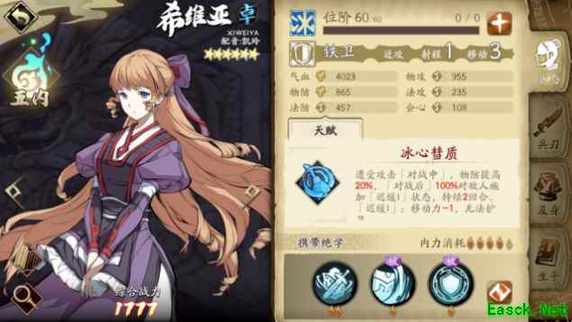 对比英灵:「极」赫兰铁罕 气血:甲;物攻:丁;物防:甲;法攻:丁;法防:丁;会心:丁 推荐理由: 1) 实用天赋「骁勇善战」:替周围2格友方承受伤害。若自身两2格队友,则遭受攻击「对战中」物攻和物防提升15%(6星满级)。 2、实用绝学「贯甲奇谋」:「被动」行动结束时,对自身3格范围内物攻/法攻属性最高的2个敌人施加「蚀御」效果,持续1回合。「蚀御」:物防-20% 3、其他铁卫需要消耗2火的绝学韦胜作为被动全程自带,作为纯粹的肉盾相当实用,虽然基础属性稍低一些,但只要在注意属性克制的情况下就不会被秒。 4、面对材料本或高难度本中的强力怪的时候非常有用,配合近攻有奇效。 注意事项: 不太适合与先攻类的英灵组队,比如「杨云佐」「应灵华」等。 2. 希维亚:
