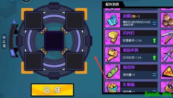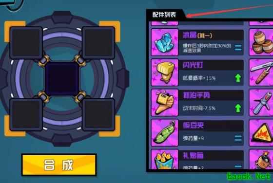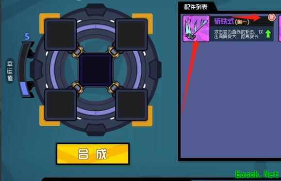 《奇葩战斗家》斩铁式合成公式配方斩铁式:合金支架+抓拍手势+折盈杆+闪光灯 1、选择点击打开合成界面。