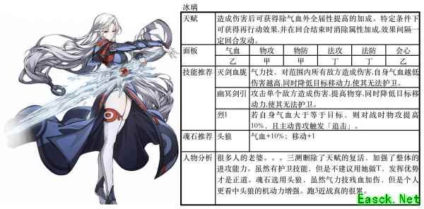 《天地劫:幽城再临》冰璃魂石推荐冰系最强剑客、天地劫看板娘,自身拥有高频二动天赋以及强大的物理输出,拥有开荒第一神技避实就虚。同时能够客串坦克以及自身免死。能够单刷火系副本,站桩最强剑客。比起封寒月略微逊色于机动性。 推荐魂石 :幽魉>头狼>罗鬼 魂石选用头狼,虽然气力技残血加伤,但是个人更看中头狼的机动力增强。 推荐词条 物伤=物攻>气血>暴击率=物穿
