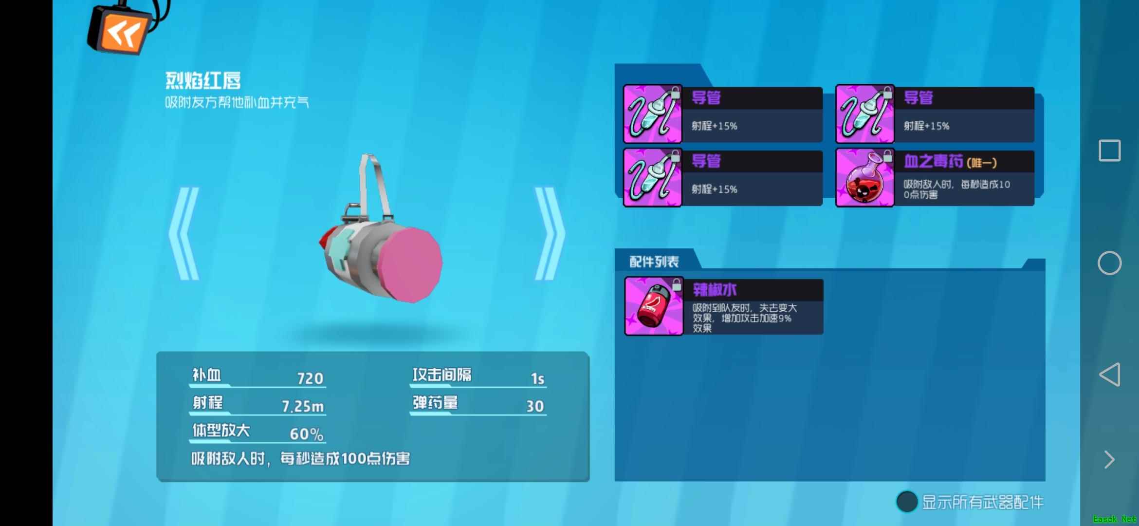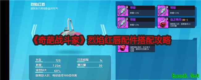 《奇葩战斗家》烈焰红唇配件搭配攻略烈焰红唇 1、目前的唯一配件其实可有可无 2、其他配件推荐带导管(距离),在一定程度上加强了自保能力,当你给队友放大时,你很容易被敌人盯上,所以保持一定的距离是最佳的选择 3、另外,集齐四个辣椒水,可以召唤神龙(滑稽)