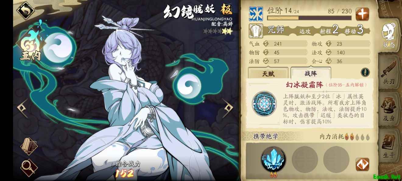 《天地劫:幽城再临》幻镜胧妖五内加点推荐推荐:主中辅上+冰之力 五内不能重置,点歪了,只能攒灵蕴石才能继续加点