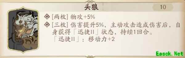 【头狼】:常驻较低增伤,打人就能+2移动力,可以让羽士更灵活。