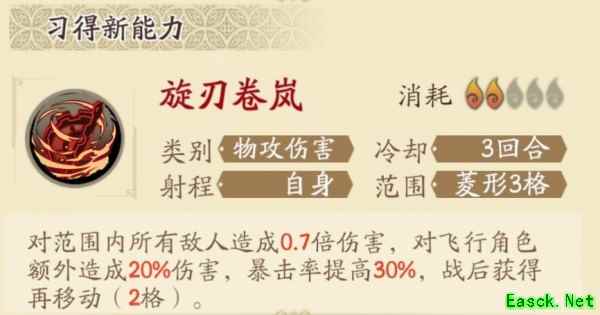 技能搭配2:【逐风破】+【挫锐胁迫/吹角】+【马踏飞燕】 ※这套是放弃自身的AOE特性,作为辅助输出打BOSS使用的。 ※如果携带【挫锐胁迫】,适合开荒越级时伤害够,但是身板不太达标的情况。 ※如果存在其他协力技或者生存OK,则带个【吹角】,个人不太推荐,